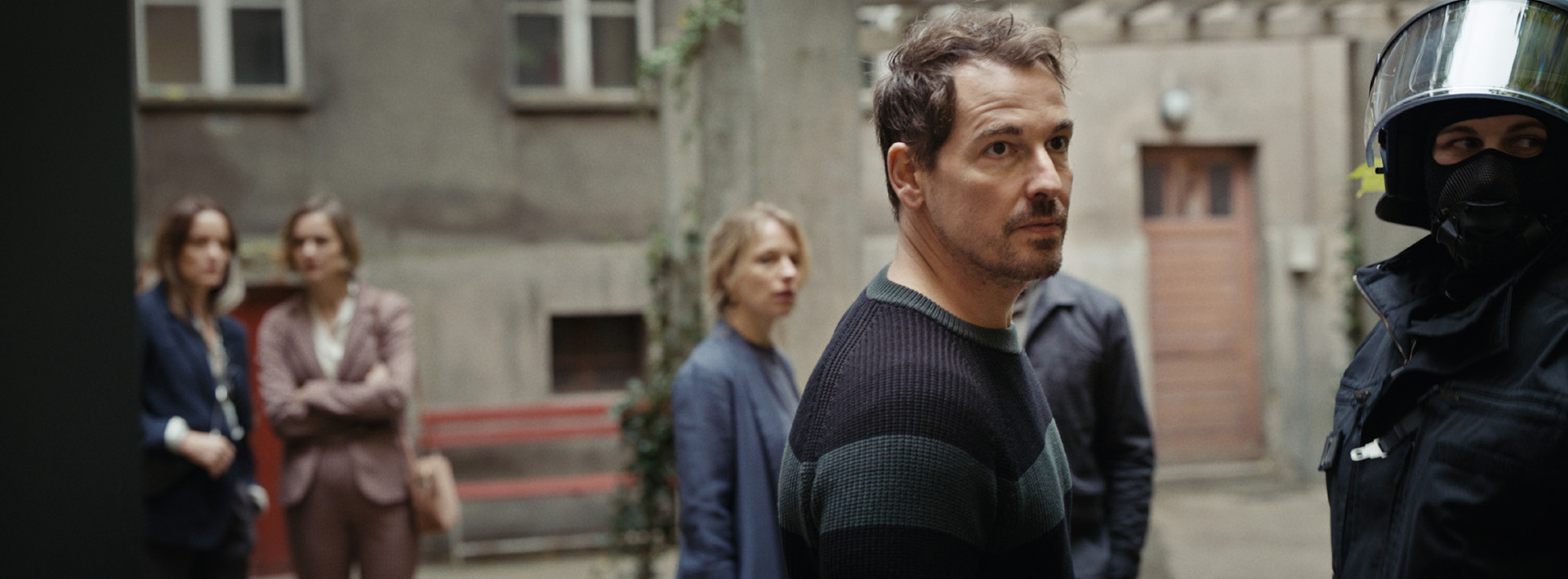 In Berlin, the police blocks the entrance and exit of a building. Inside it, the residents have no information and start to panic. The neighbors suspect one another, and begin to wonder whether the danger is outside or inside the building.